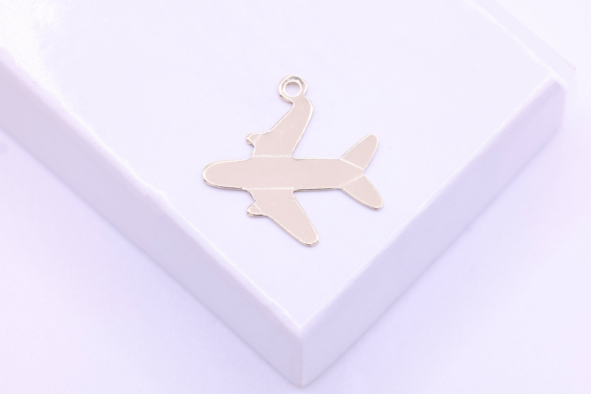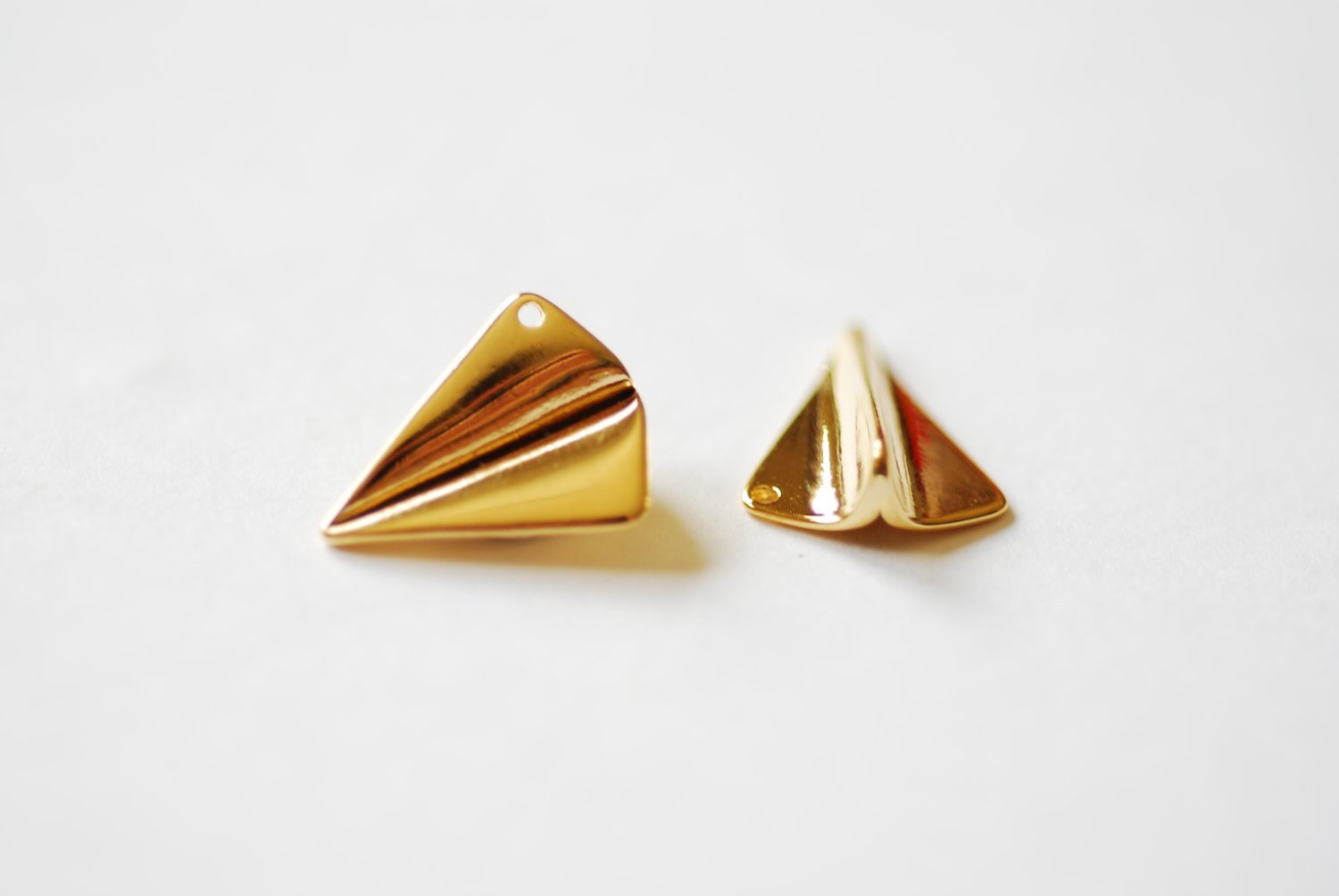 Paper Airplane Charm, 14K Solid Gold, 16mm x 13mm, Folded Plane Aviation
