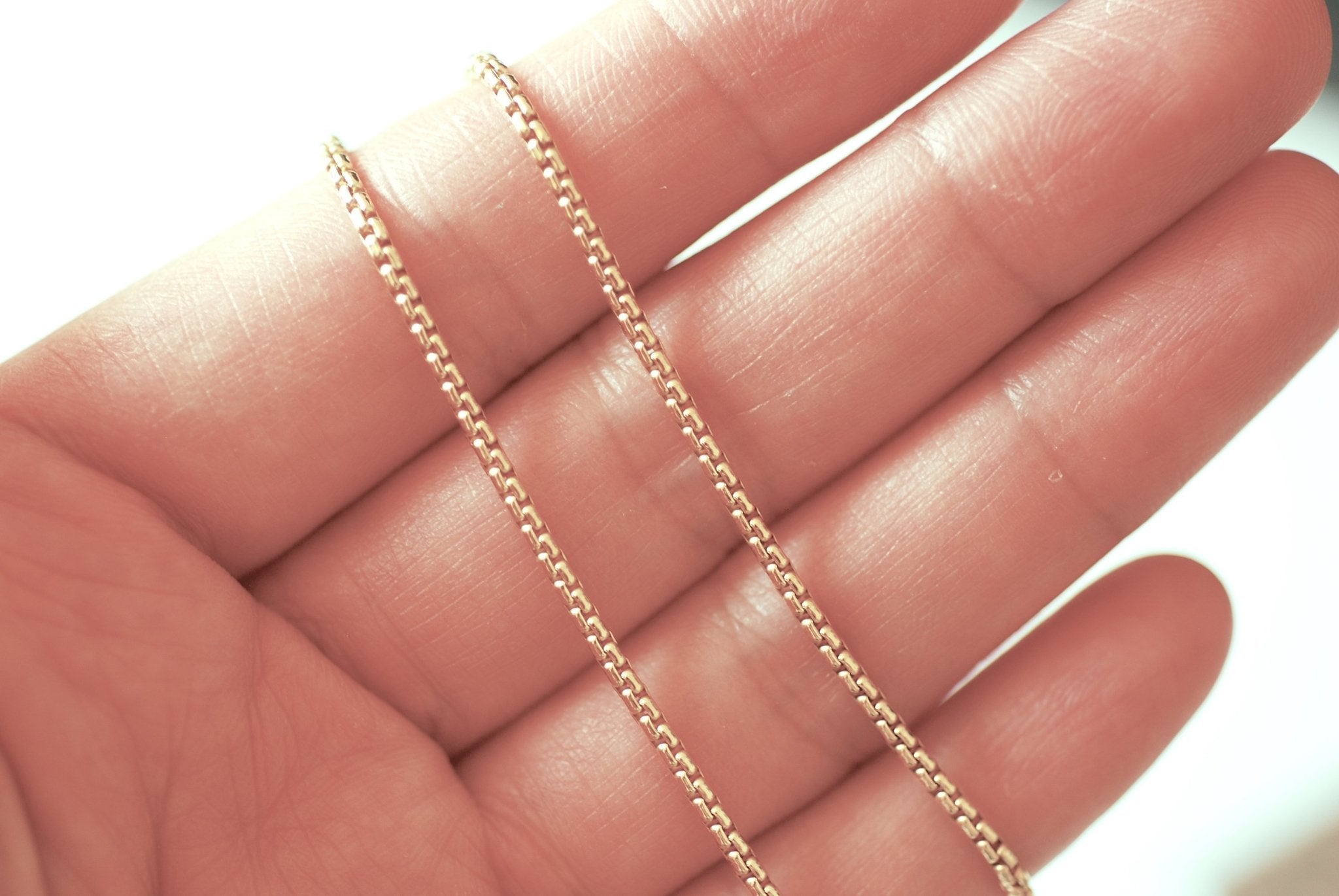 Available in materials such as gold-filled and 925 sterling silver, our Box Chains are perfect for crafting everything from elegant necklaces to charm bracelets. Their simplicity makes them ideal for pairing with pendants or wearing alone as a minimalist statement. Stock up on these high-quality Box Chains at wholesale prices and elevate your jewelry designs.