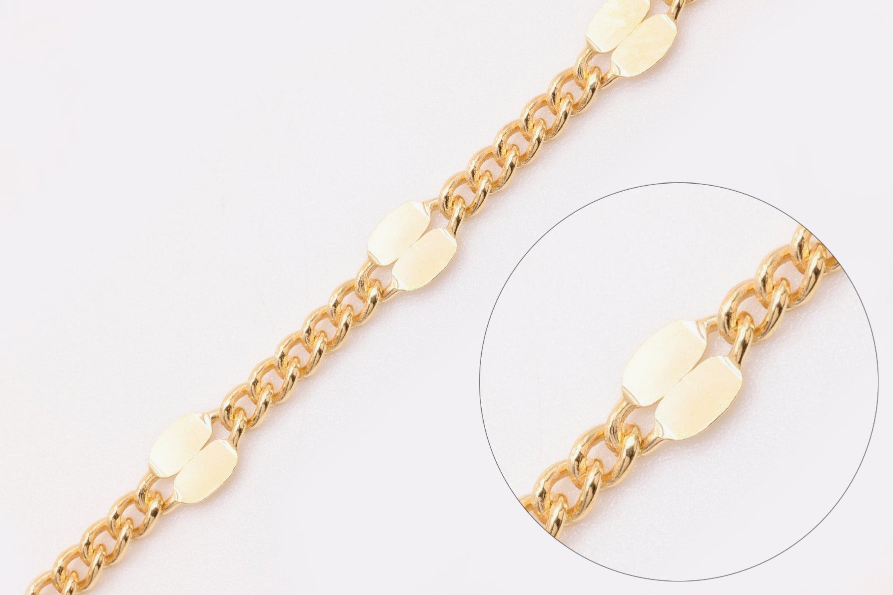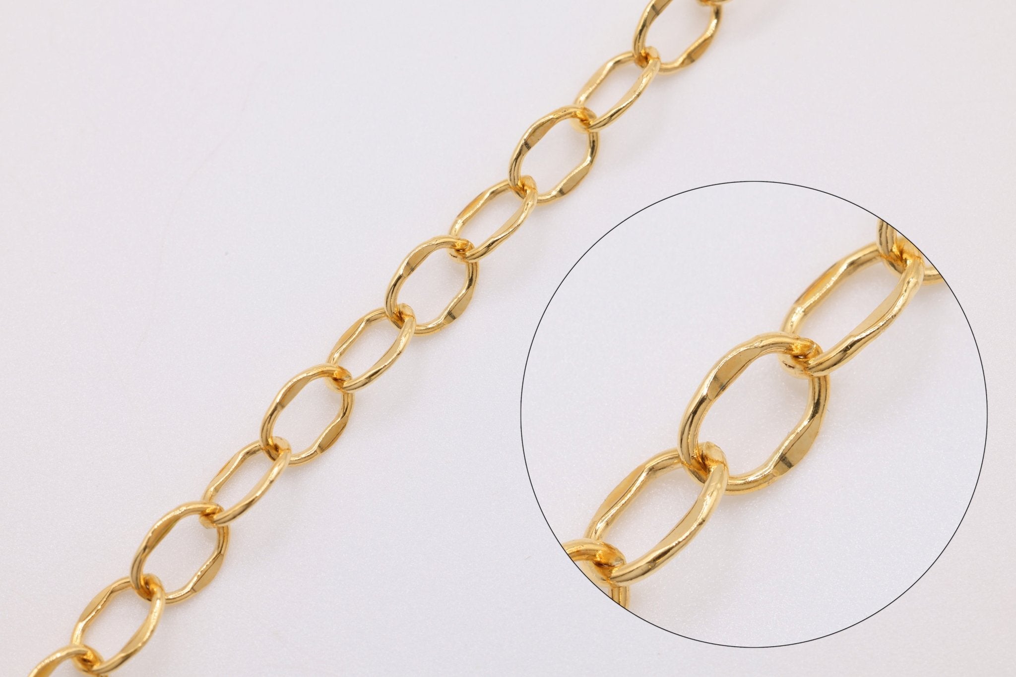 Dapped jewelry chain is a type of chain characterized by its textured links that have been dapped, or dimpled, to create a unique visual effect. Dapping is a metalworking process where parts of the jewelry, in this case, the links of the chain, are hammered lightly or pressed into a mold to create a concave shape or indentations. This technique adds depth and facets to the chain, allowing it to catch and reflect light in a distinctive way.