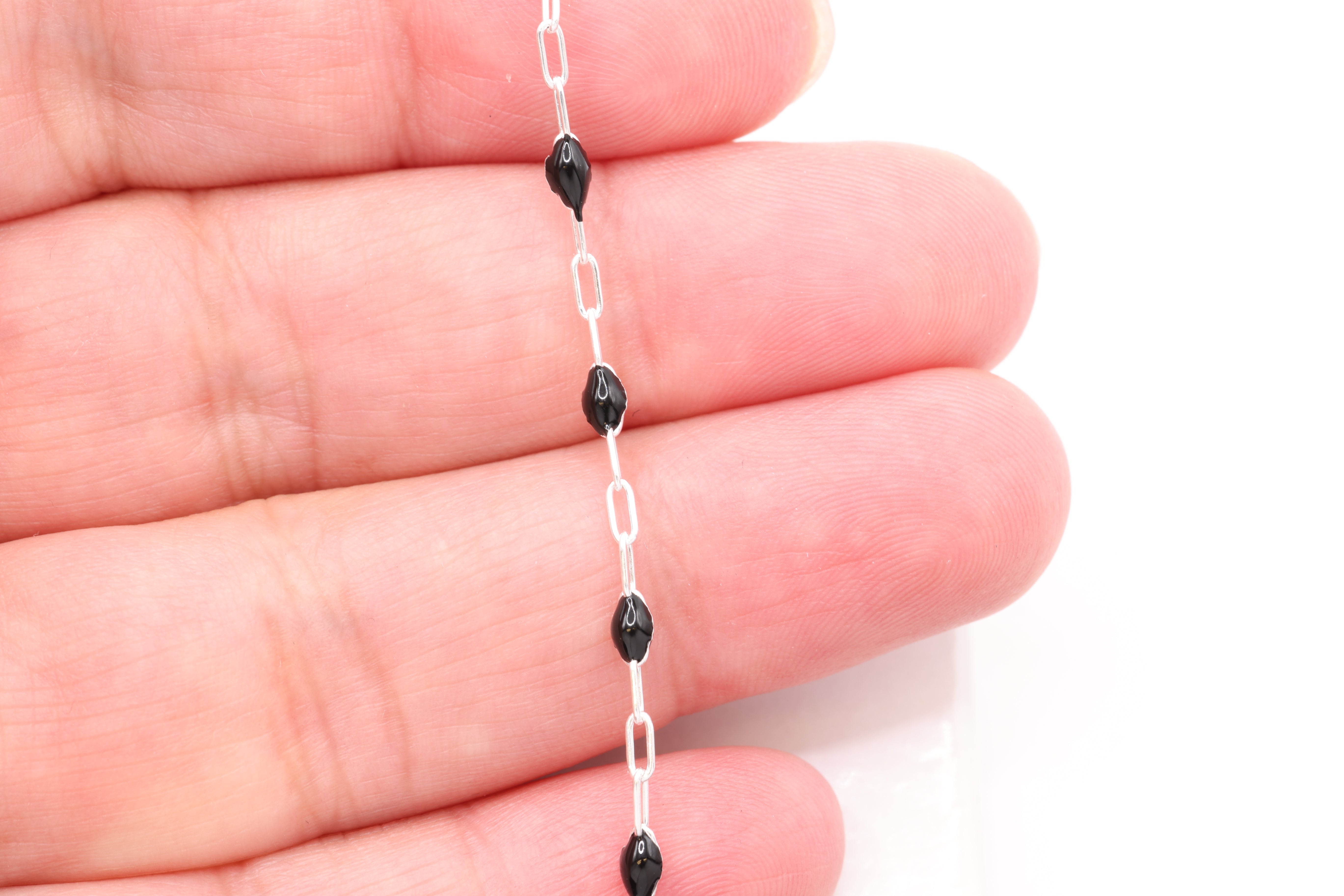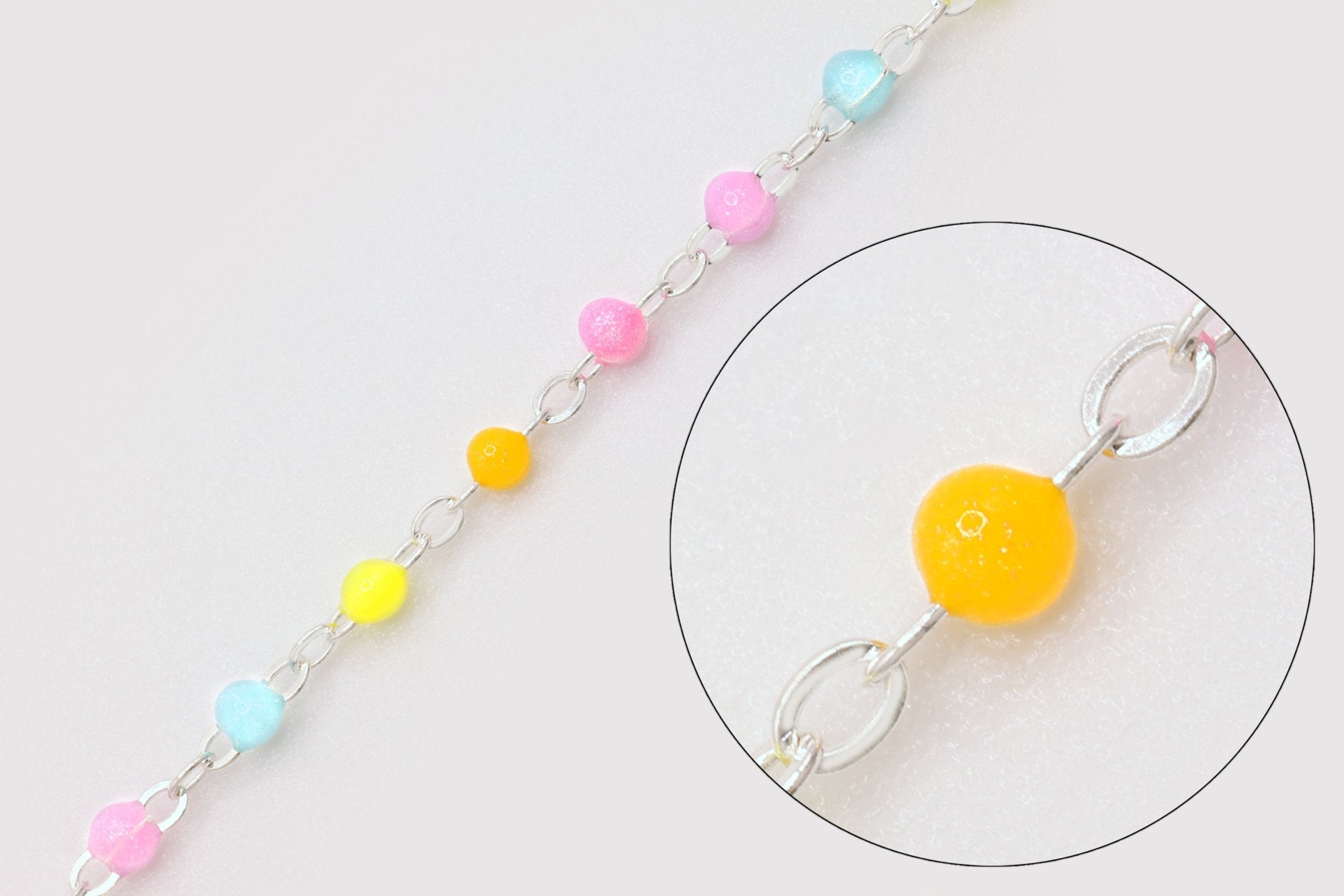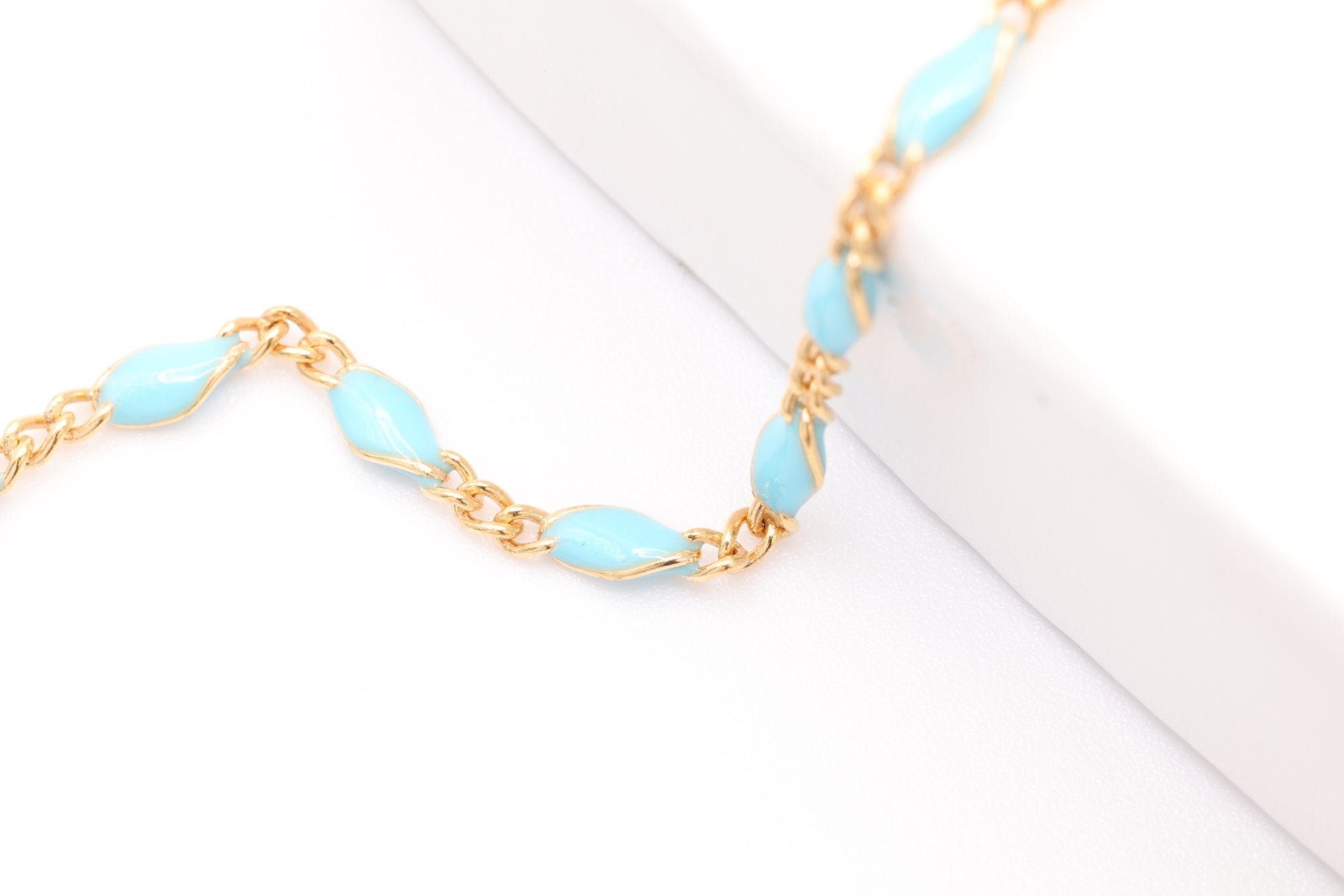 Explore our wholesale collection of Enamel Chain for jewelry making. Perfect for jewelers looking to add a splash of color and uniqueness to their jewelry. Each chain in our collection features high-quality links, coated with a durable, glossy enamel finish. This enamel layer not only brings a burst of color but also adds a smooth, lustrous surface to each link, enhancing the chain's overall aesthetic. Available in a rainbow of colors, from classic hues to bold, contemporary shades, our enamel chains are ideal for crafting eye-catching necklaces, bracelets, and anklets.