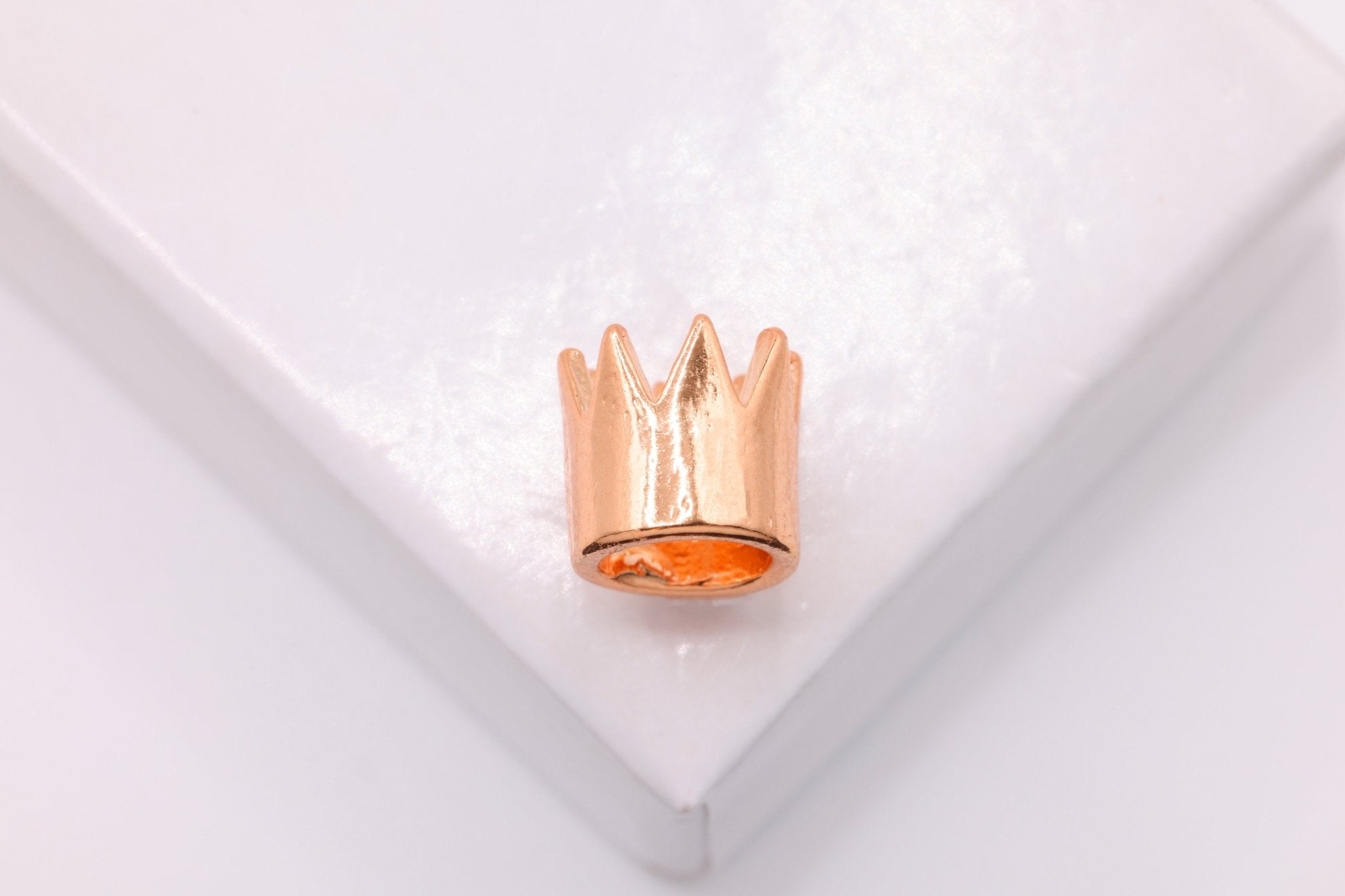Crown Bead Charm, Wholesale, 14K Solid Gold, 9mm x 8mm, Princess Crown