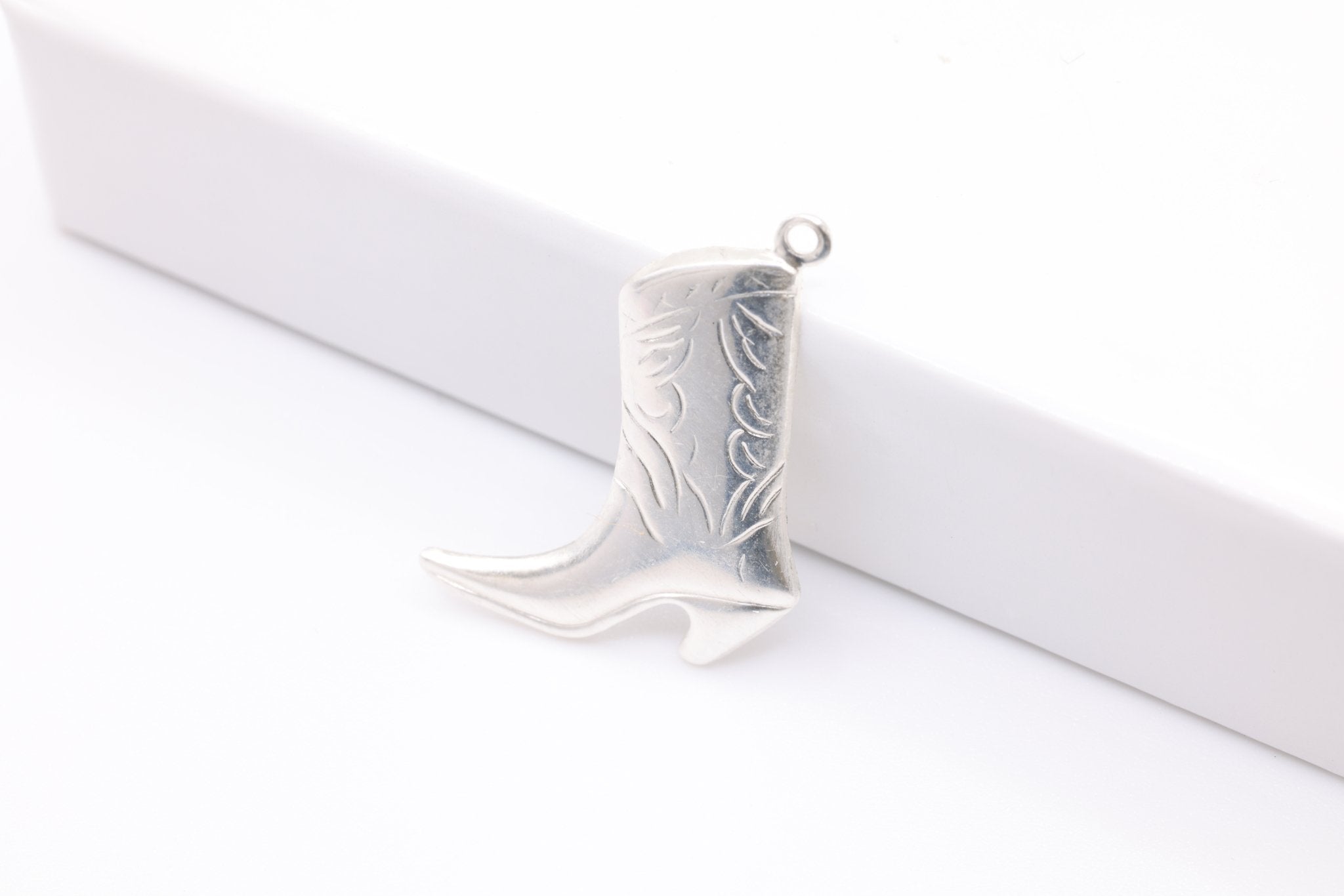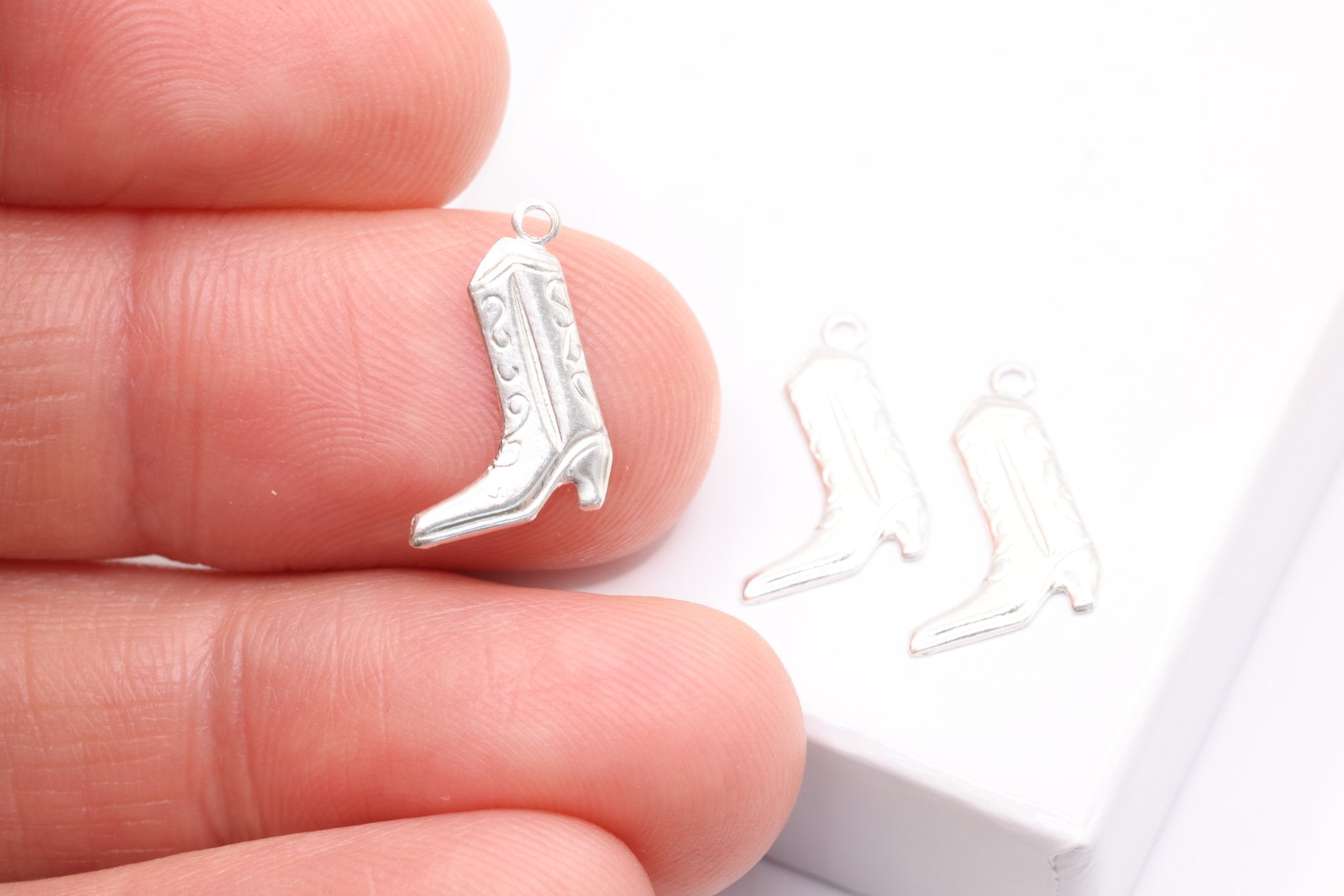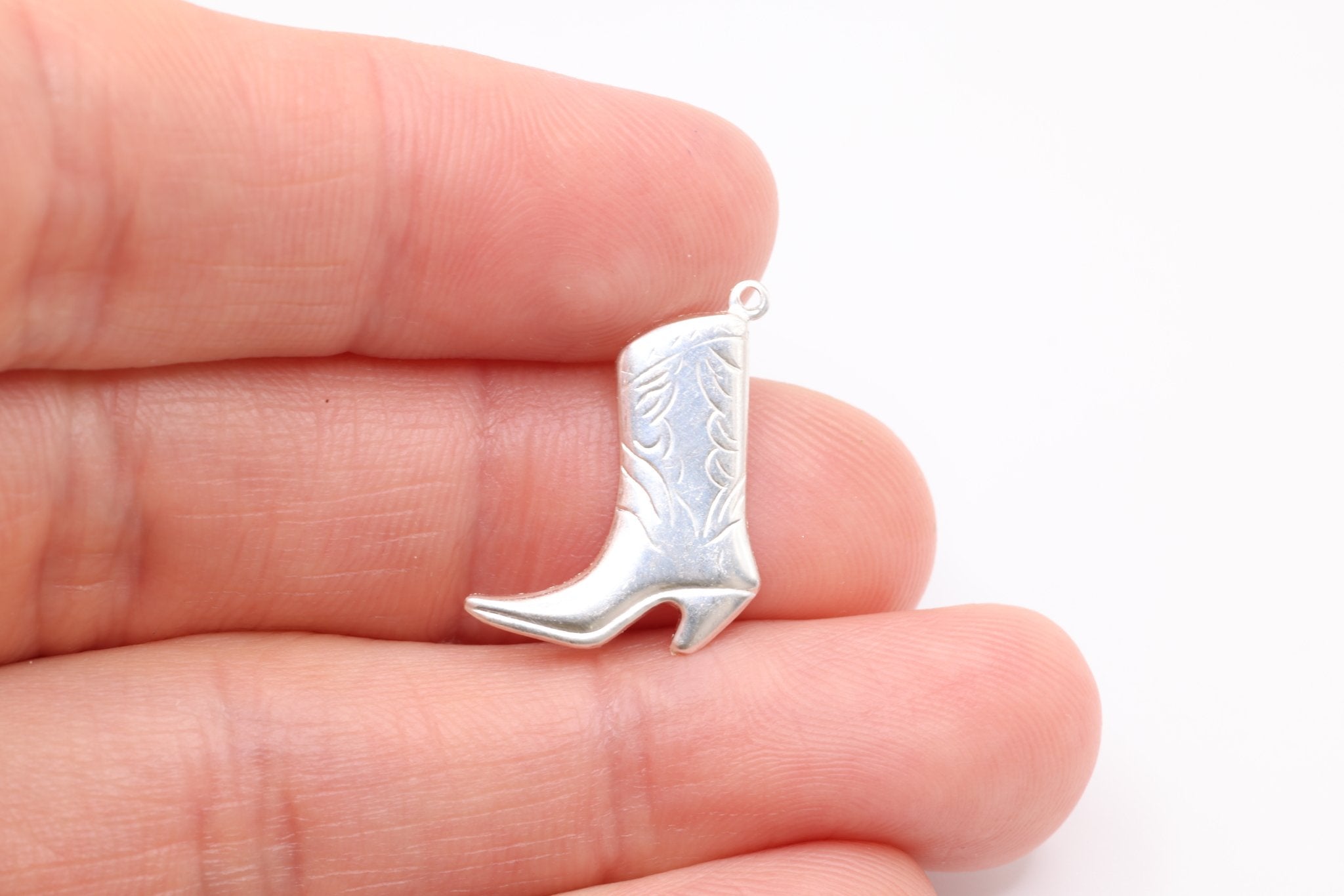 Cowboy Boot Charm, 925 Sterling Silver, 15mm x 10mm, Jewelry Making Charm