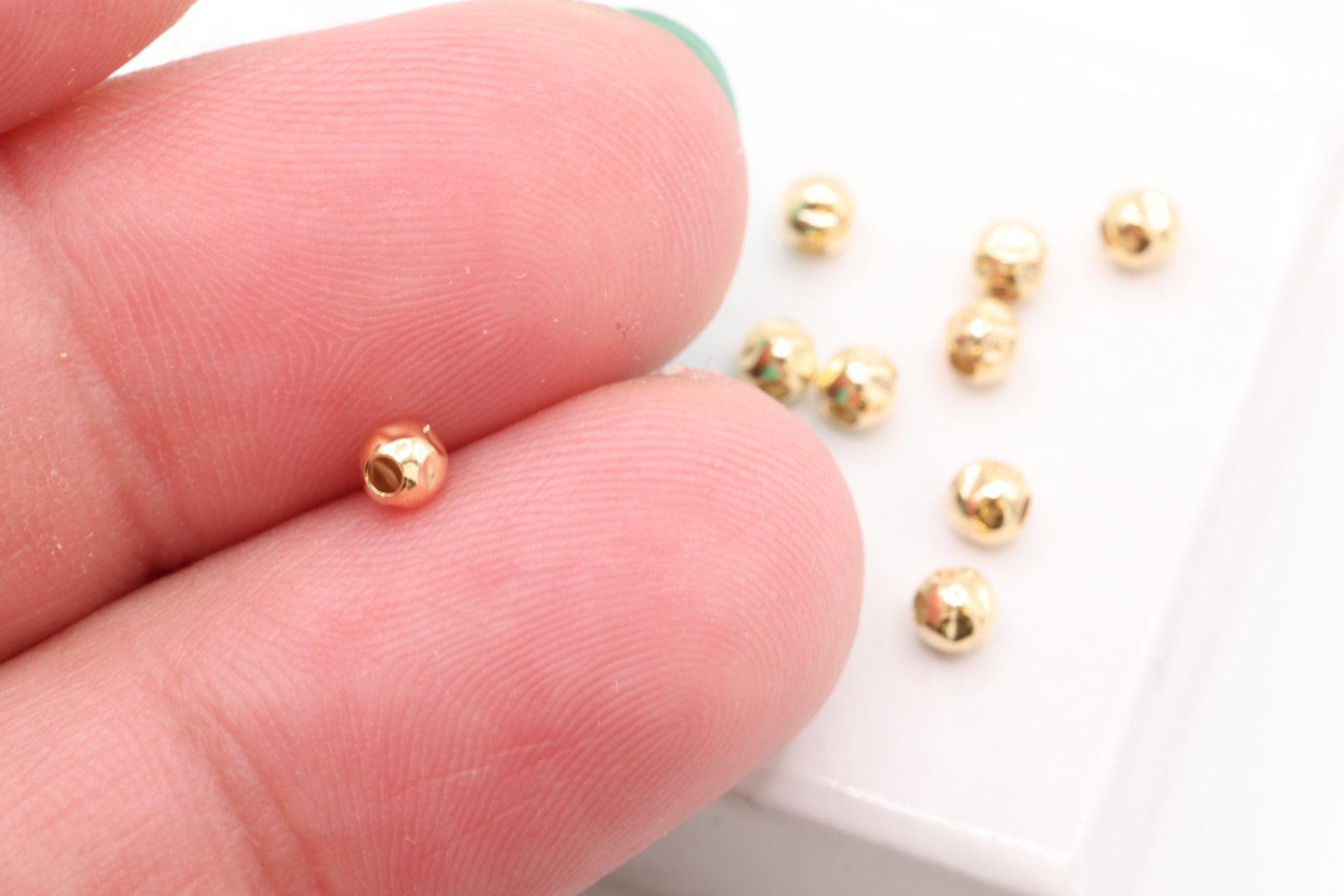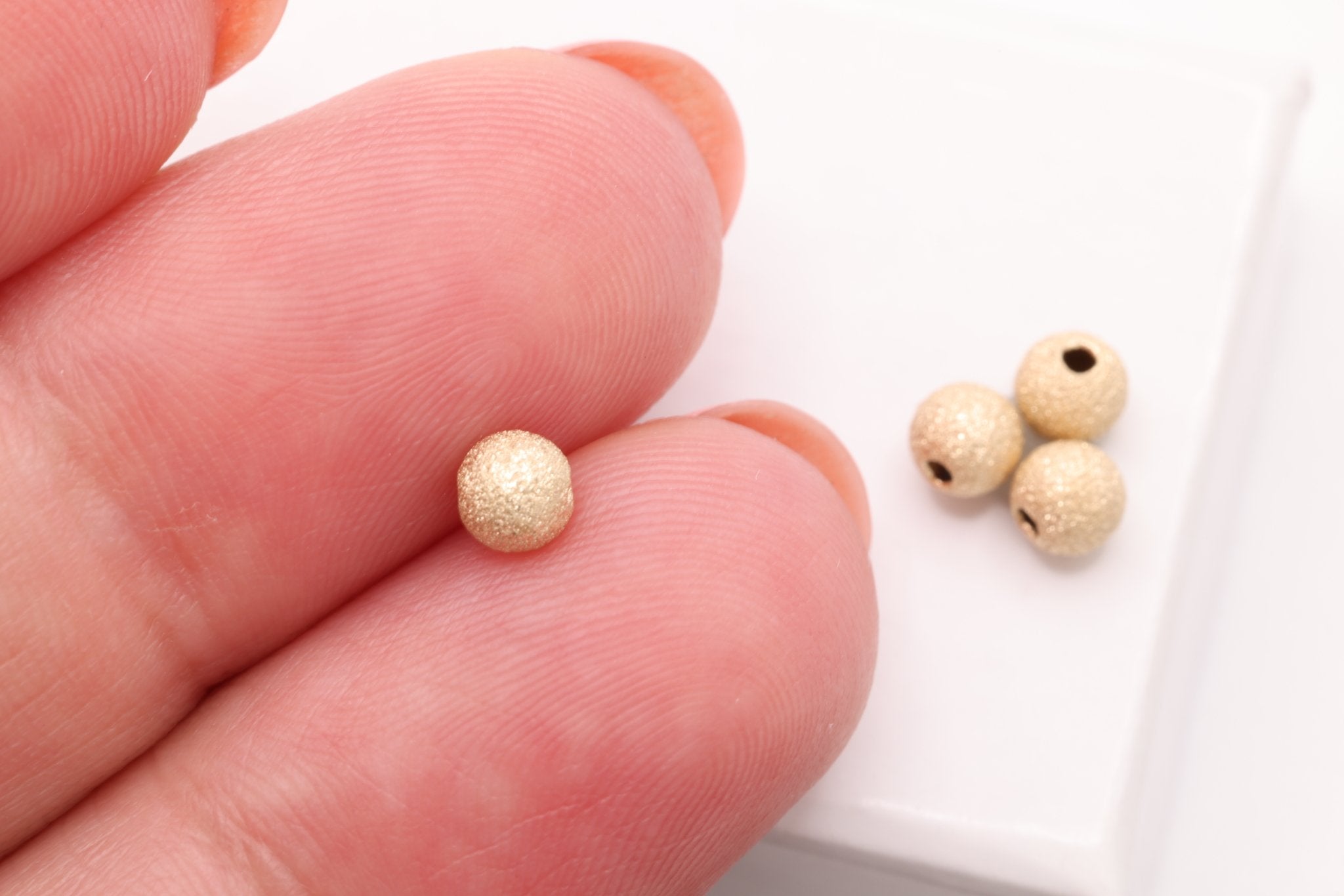 Our collection of jewelry-making beads cater to jewelry, retailers, and hobbyists passionate about creating bracelets and other jewelry. Gold-filled beads are a popular choice for those who seek the luster and appeal of gold without the higher cost. These beads are created by bonding a layer of gold to a base metal, offering durability and resistance to tarnishing. This makes them an excellent option for everyday wear jewelry, providing the look and feel of solid gold at a fraction of the price. Solid gold beads are the epitome of luxury. Made in solid gold, these beads add a rich, warm glow to any jewelry piece, making them perfect for creating heirloom-quality bracelets that can be cherished for generations.