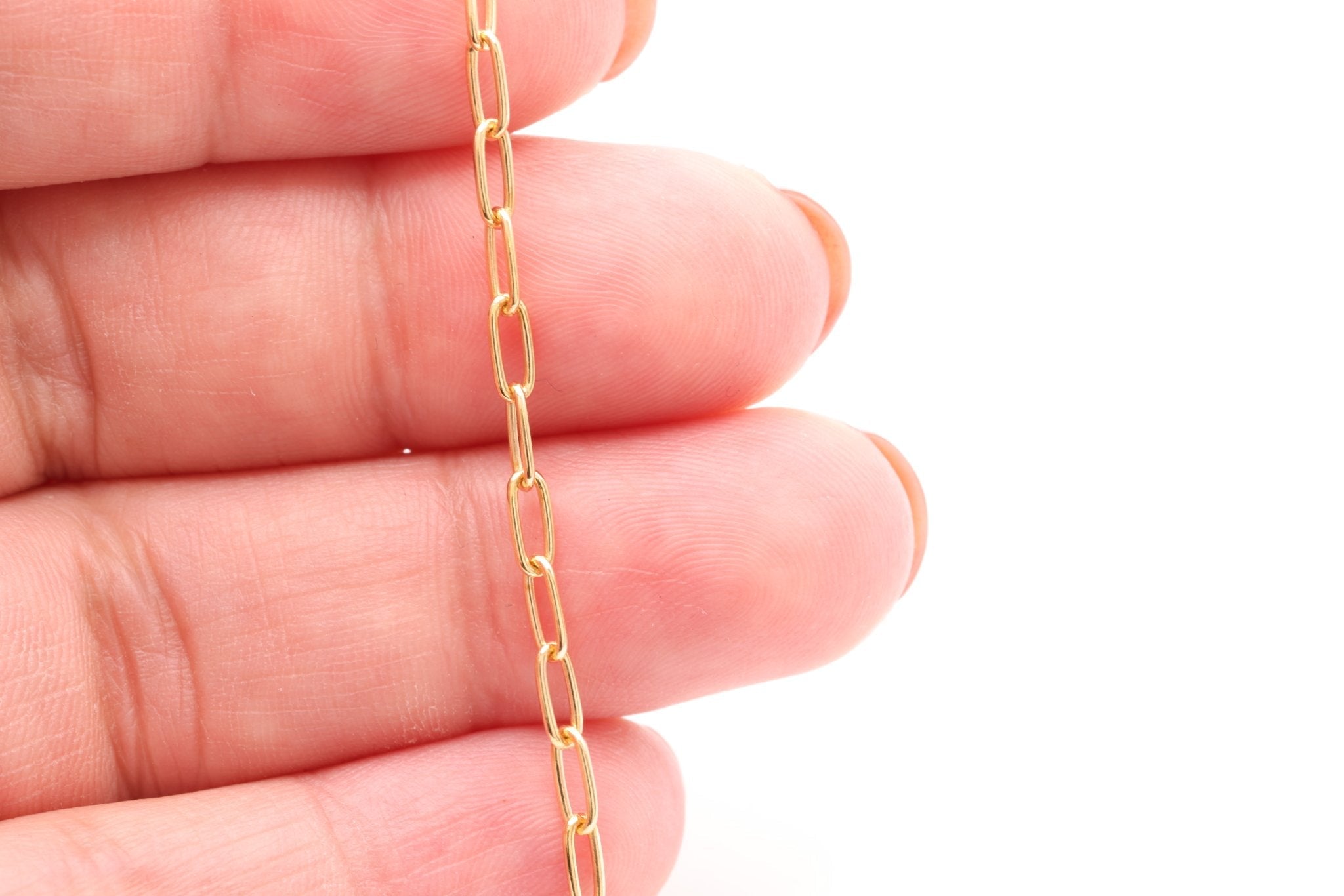 Our paperclip chain, at wholesale prices, is a popular choice for jewelry making. Made with precision and care, this chain is an ideal choice for jewelers and designers who seek a blend of contemporary style and charm. Each link is an oval or a rectangular shape, much like the shape of a traditional paperclip. The links in a paperclip chain are uniform in size and shape throughout the length of the chain. Our paperclip chain is available in a variety of materials such as gold-filled and 925 sterling silver.