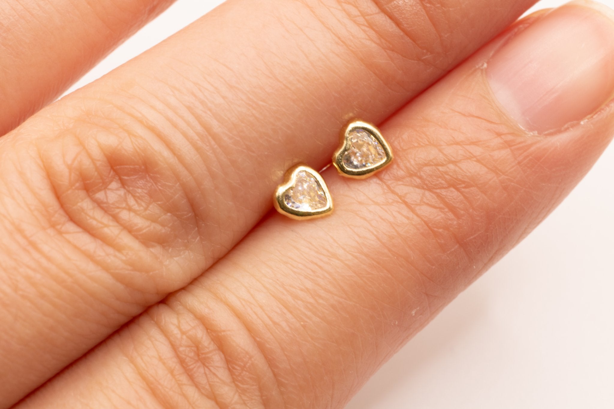 10K Gold Faceted Stud Earrings, .5mm X .5mm, Solid 10K Gold