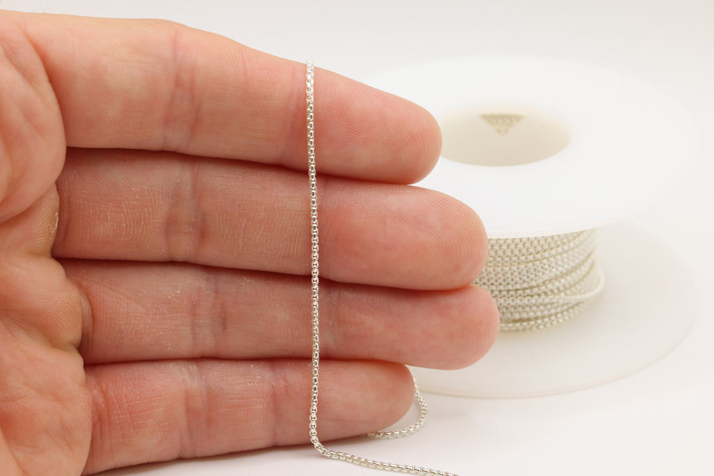 1.5mm Round Venetian Box Chain, 925 Sterling Silver, Wholesale, Pay Per Foot, Jewelry Making Chain