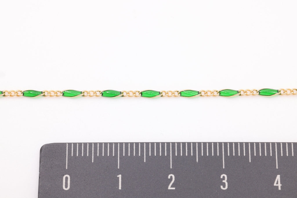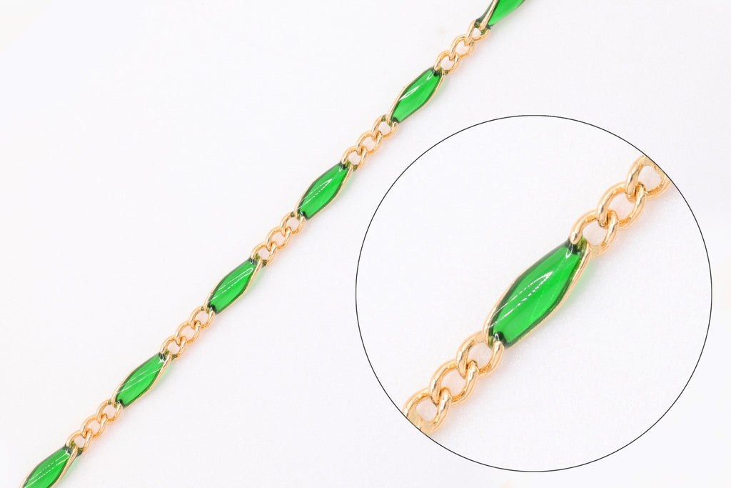 2.5mm x 3.5mm Figaro Green Enamel Chain, 14/20 Gold-Filled, Enamel Color Unfinished Chain Permanent Jewelry