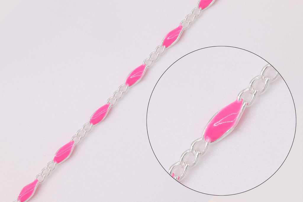 2.5mm x 3.5mm Figaro Pink Enamel Chain, 925 Sterling Silver, Enamel Color Unfinished Chain Permanent Jewelry