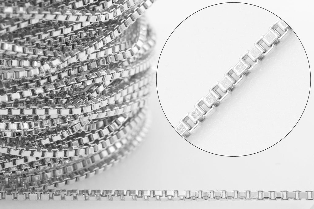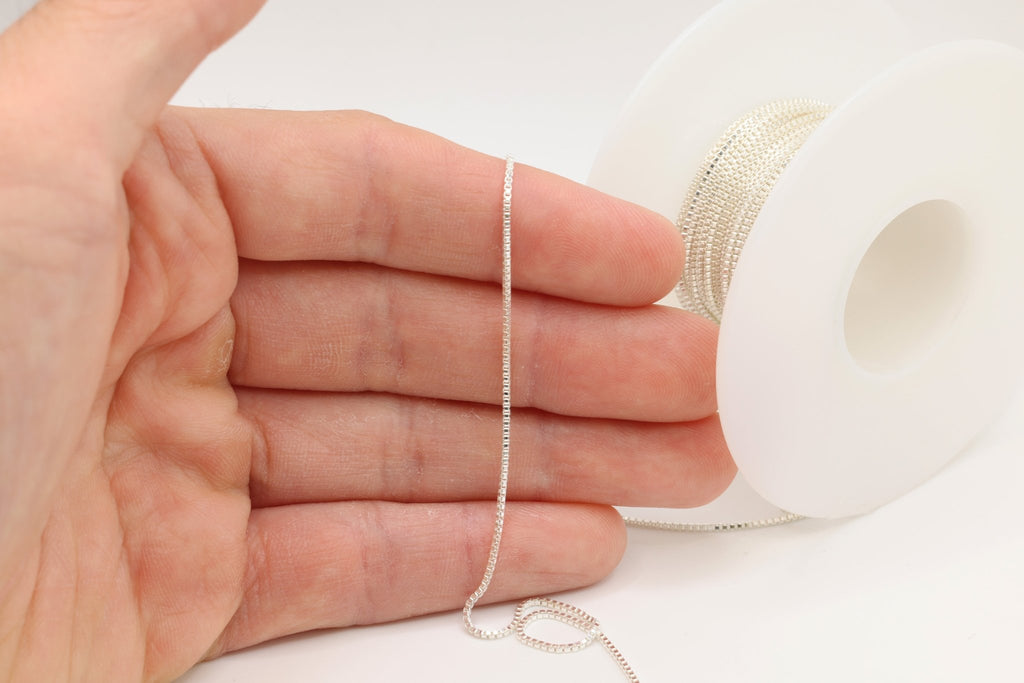 1mm Box Chain, 925 Sterling Silver, Wholesale, Pay Per Foot, Jewelry Making Chain