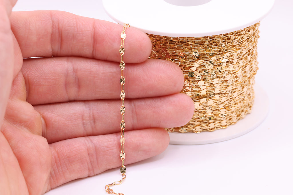 2.5mm x 4mm Square Textured Paperclip Chain, 14/20 Gold-Filled, Wholesale, Pay Per Foot, Jewelry Making Chain