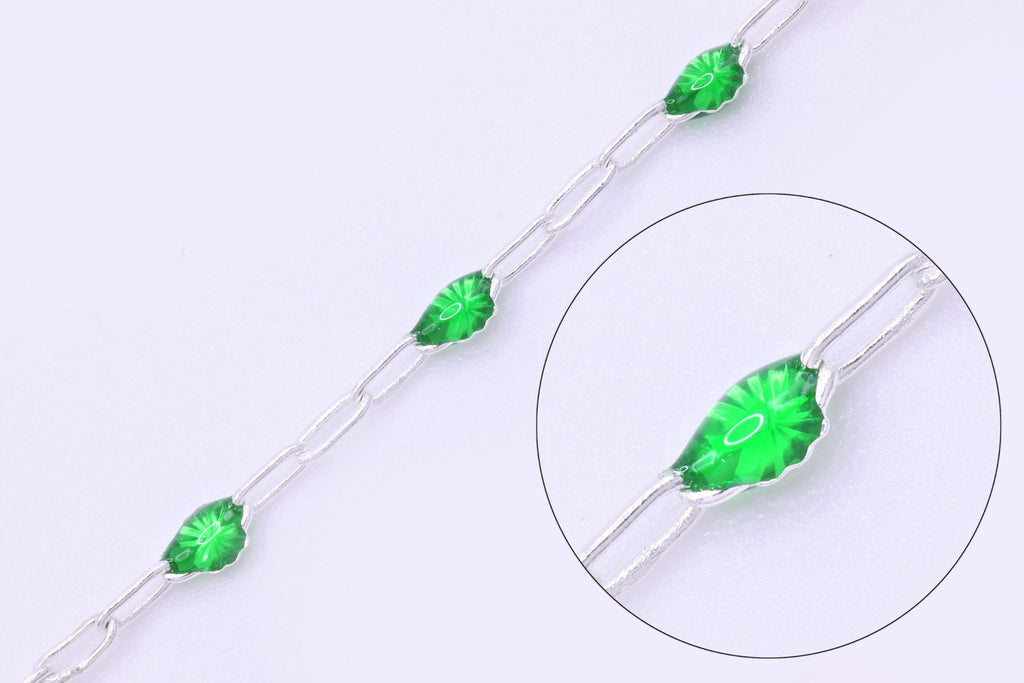 2mm x 2.5mm Paperclip Green Enamel Chain, 925 Sterling Silver, Enamel Color Unfinished Chain Permanent Jewelry