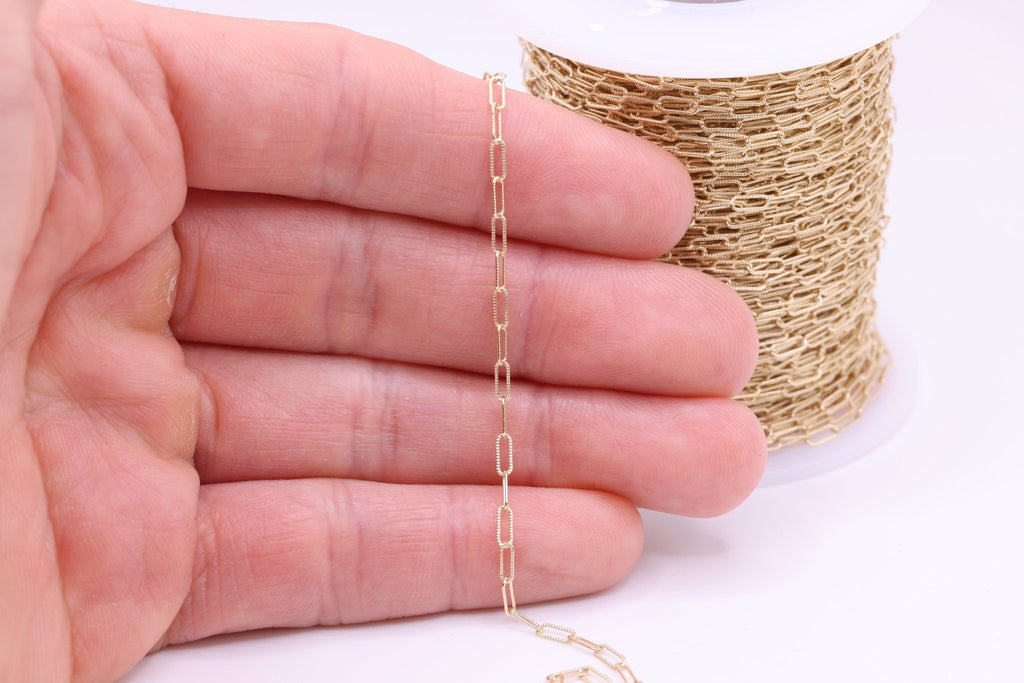 2mm x 5mm Knurled Paperclip Chain, 14/20 Gold-Filled, Wholesale, Pay Per Foot, Jewelry Making Chain