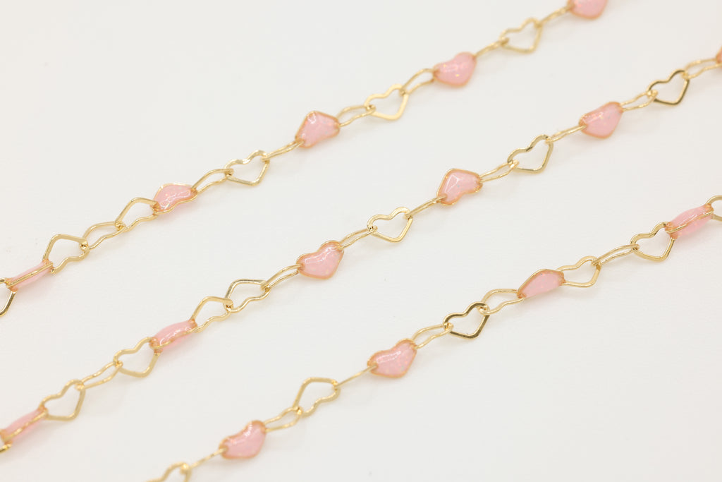 3mm x 3mm Heart Light Pink Enamel Chain, 14/20 Gold-Filled, Enamel Color Unfinished Chain Permanent Jewelry