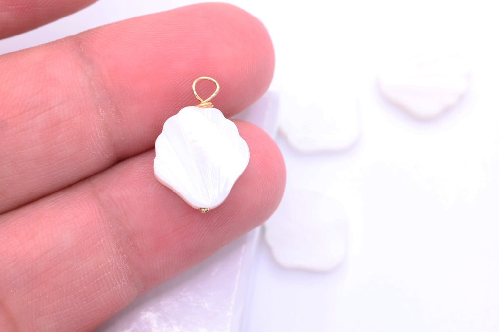 Scallop Shell Mother of Pearl Charm, 14/20 Gold-Filled Wire, 13mm x 13mm, Bulk DIY Wholesale Jewelry Making Charm