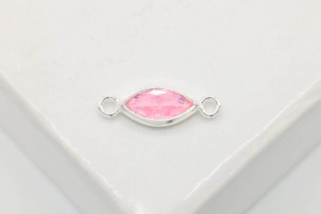CZ Pink Marquis Bezel Connector Charm, 925 Sterling Silver, 3mm x 6mm, White Cubic Zirconia Jewelry Making Charm
