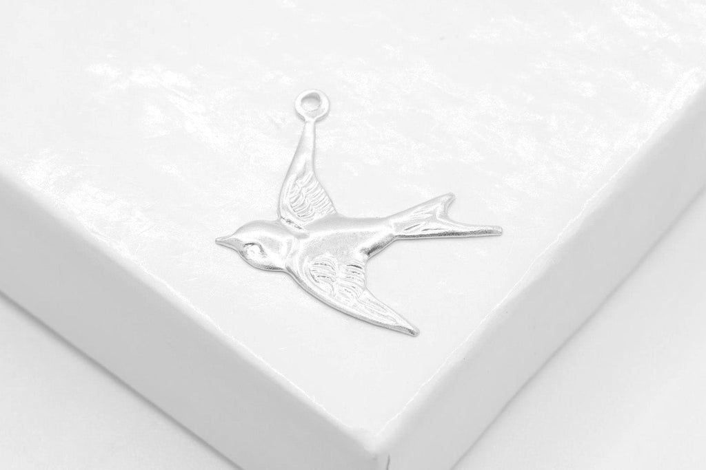 Dove Swallow Bird Charm, 925 Sterling Silver, 20mm x 18mm, Wholesale, Peace Love, Jewelry Making Charm
