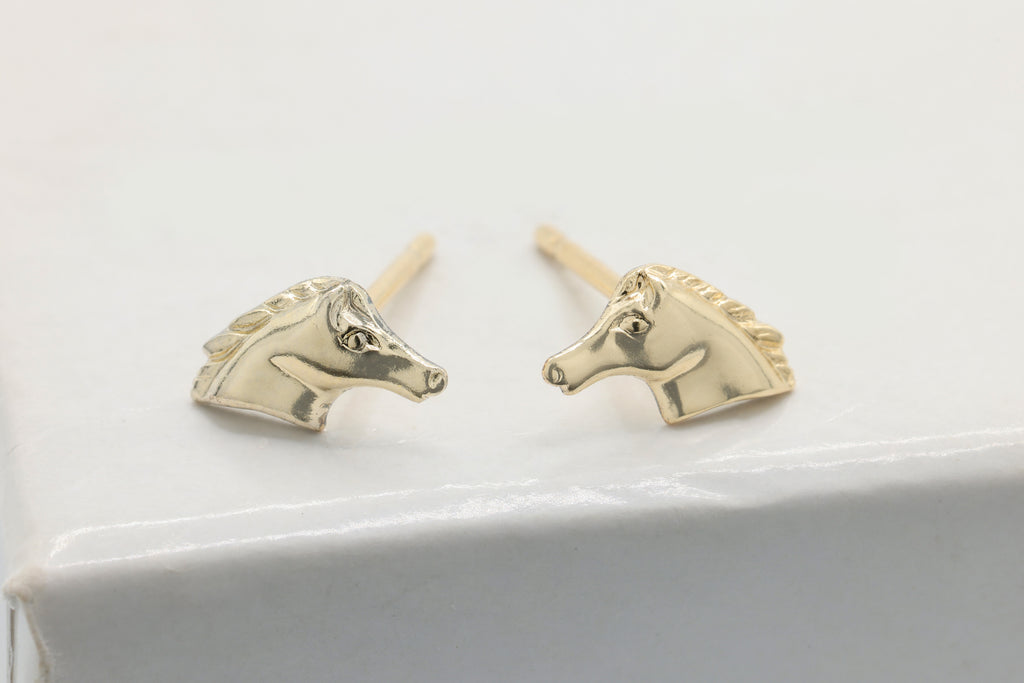 Horse Stud Earring, 14/20 Gold-Filled, 8mm x 4mm, Wholesale, Equestrian Stallion Cowboy Dainty Minimalist Jewelry Earrings