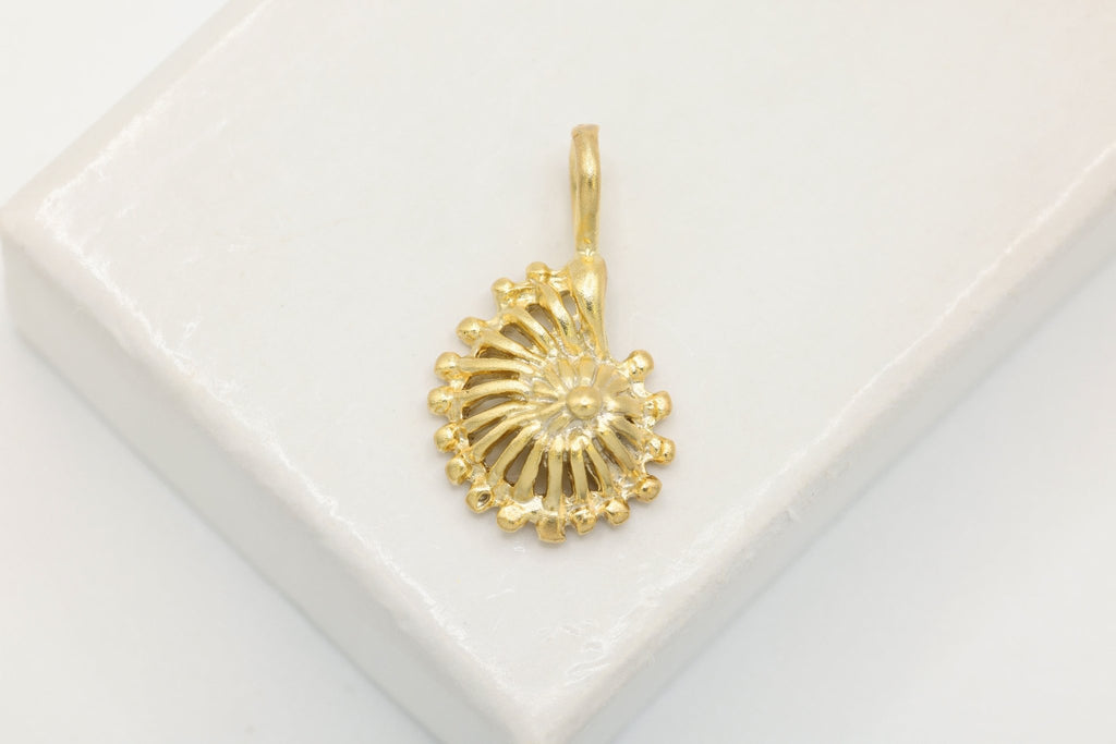 Seashell Conch Shell Charm, Wholesale, 18K Matte Gold-Plated 925 Sterling Silver, 18mm x 10mm, Cowrie Sea Life Nautical