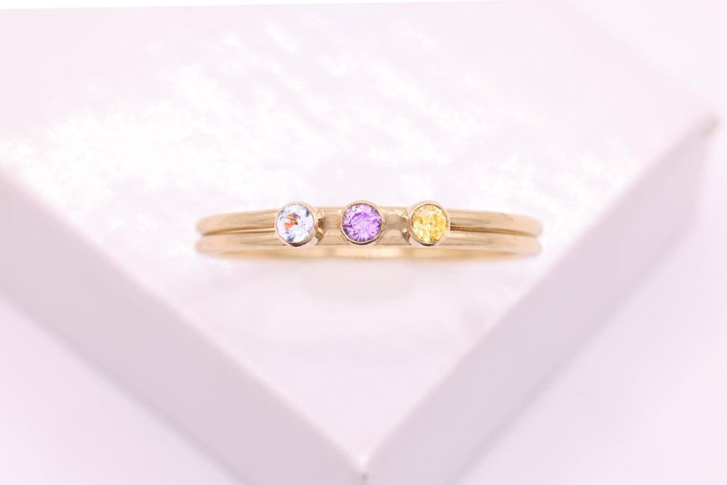 Personalized 3 Birthstone Ring, 14/20 Gold-Filled, 2mm CZ Stones