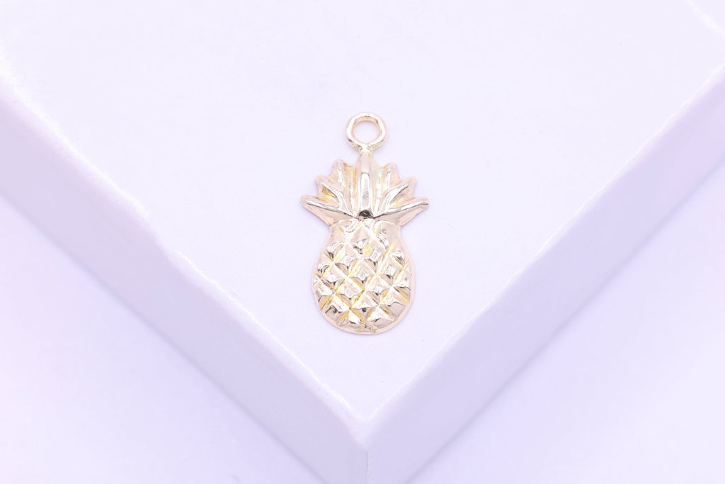 Pineapple Charm, Wholesale, 14/20 Gold-Filled, 13mm x 8mm, Hawaiian Fruit Permanent Jewelry