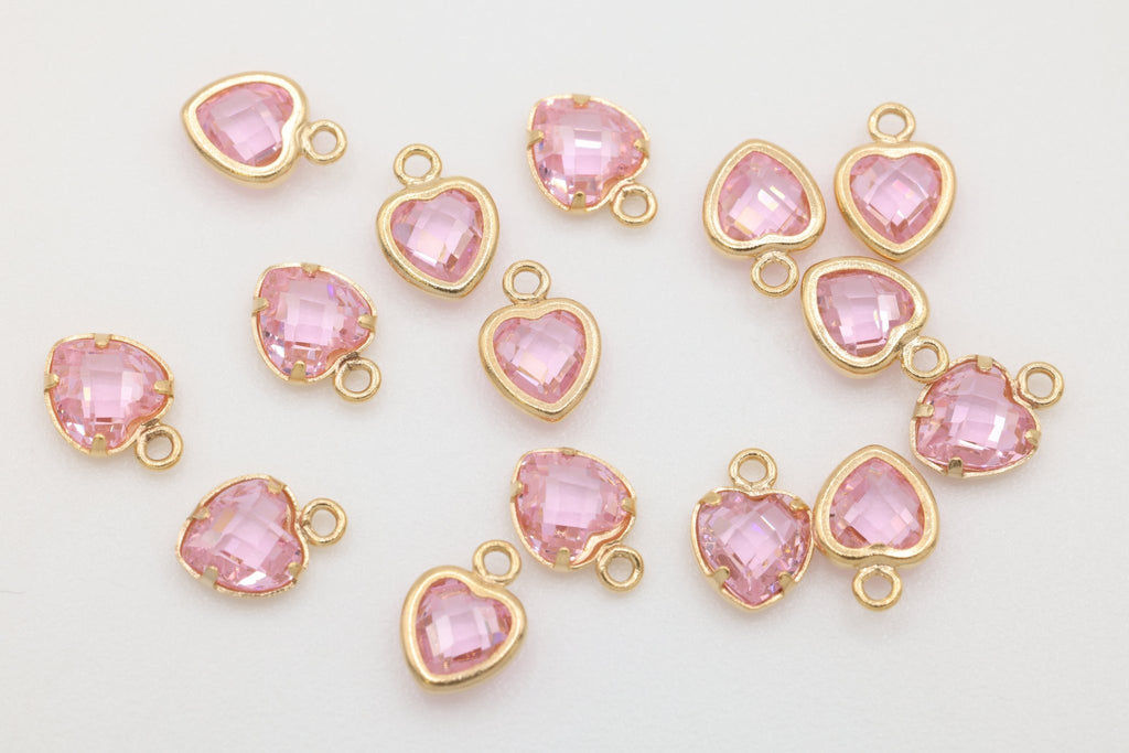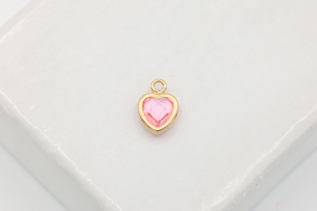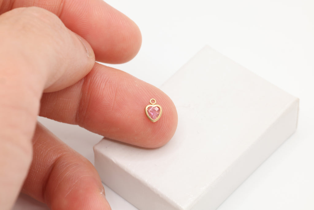 Pink CZ Heart Drop Charm, 14/20 Gold-Filled, 5mm x 5mm, Faceted Cubic Zirconia Stone, Jewelry Making Charm