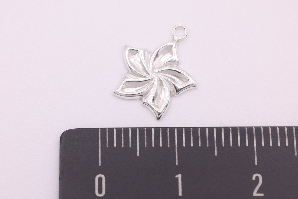 Plumeria Flower Charm, Wholesale, 925 Sterling Silver, 13mm, Floral Pinwheel Spring Flower Hawaiian