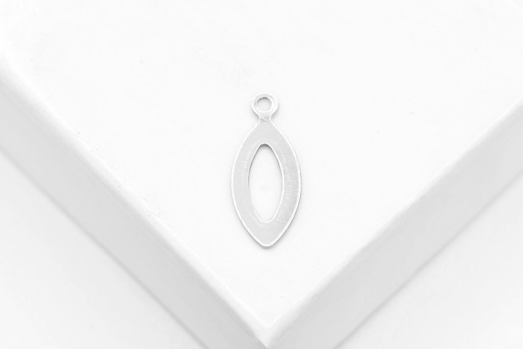 Pointed Oval Marquise Open Cut Out Teardrop Charm, Wholesale, 925 Sterling Silver, 12mm x 5mm, Jewelry Making Charm