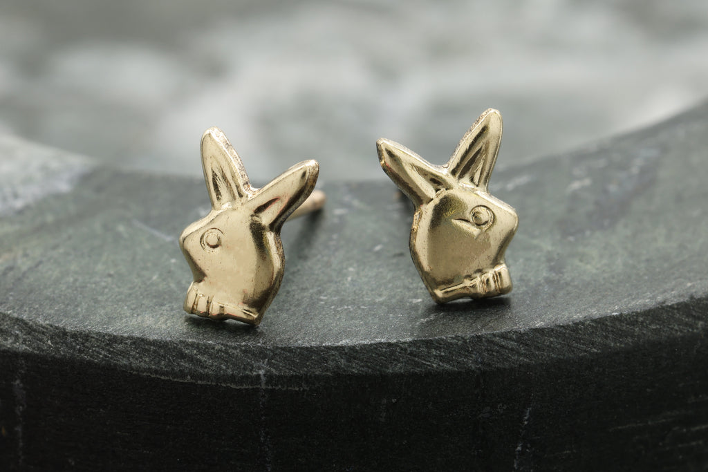 Rabbit Stud Earring, 14/20 Gold-Filled, 8mm x 5mm, Wholesale, Bunny Dainty Minimalist Jewelry Earrings