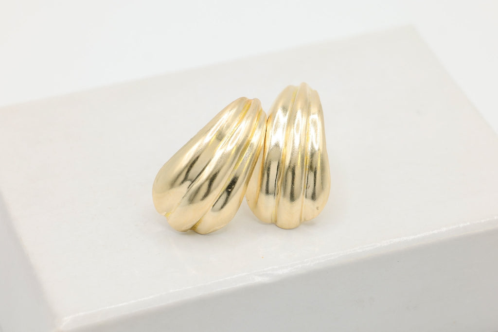 Ribbed Teardrop Earring, 14/20 Gold-Filled, 13mm x 8mm, Wholesale, Shell Fluted Tear Drop Wholesale Jewelry Earrings