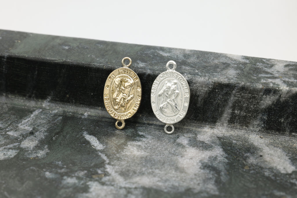 Saint Christopher Connector Charm, Wholesale, 14/20 Gold-Filled, 12mm x 9mm, Rosary Catholic Medallion Coin Patron Saint