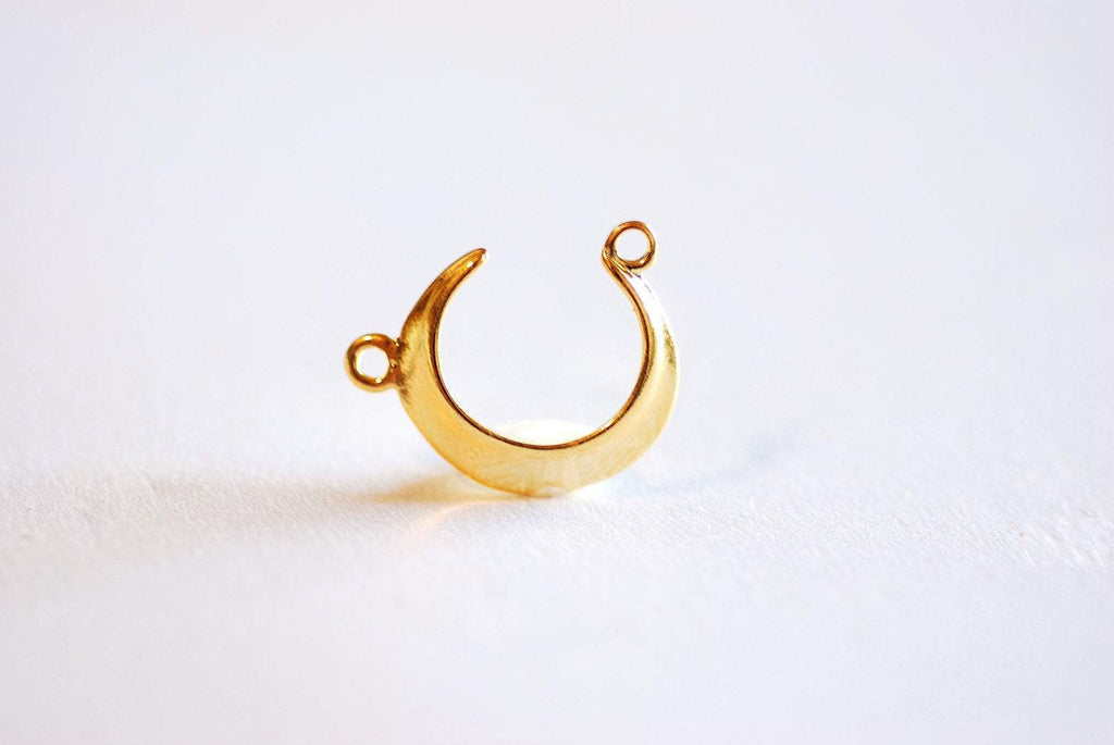 Shiny Vermeil Wholesale Gold Crescent Moon Connector Charm- 22k gold plated Sterling Silver, Gold Moon Charm Pendant, Moon Connector Link Spacer, 323