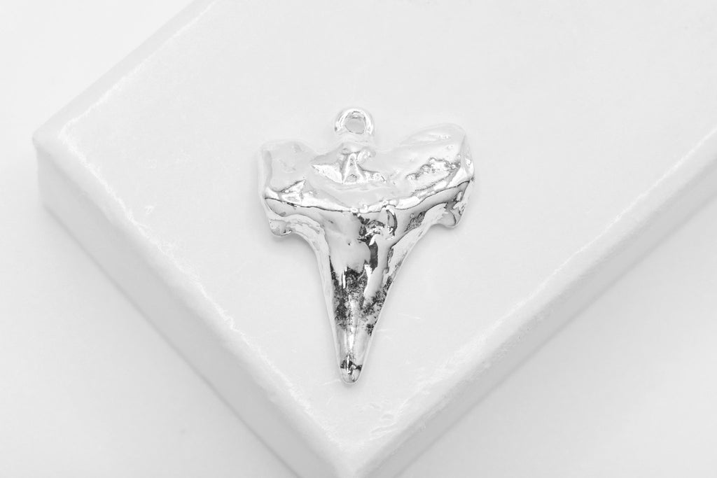 Shark Tooth Charm, 925 Sterling Silver, Pendant Large Shark tooth, Sterling Silver Jewelry Supplies